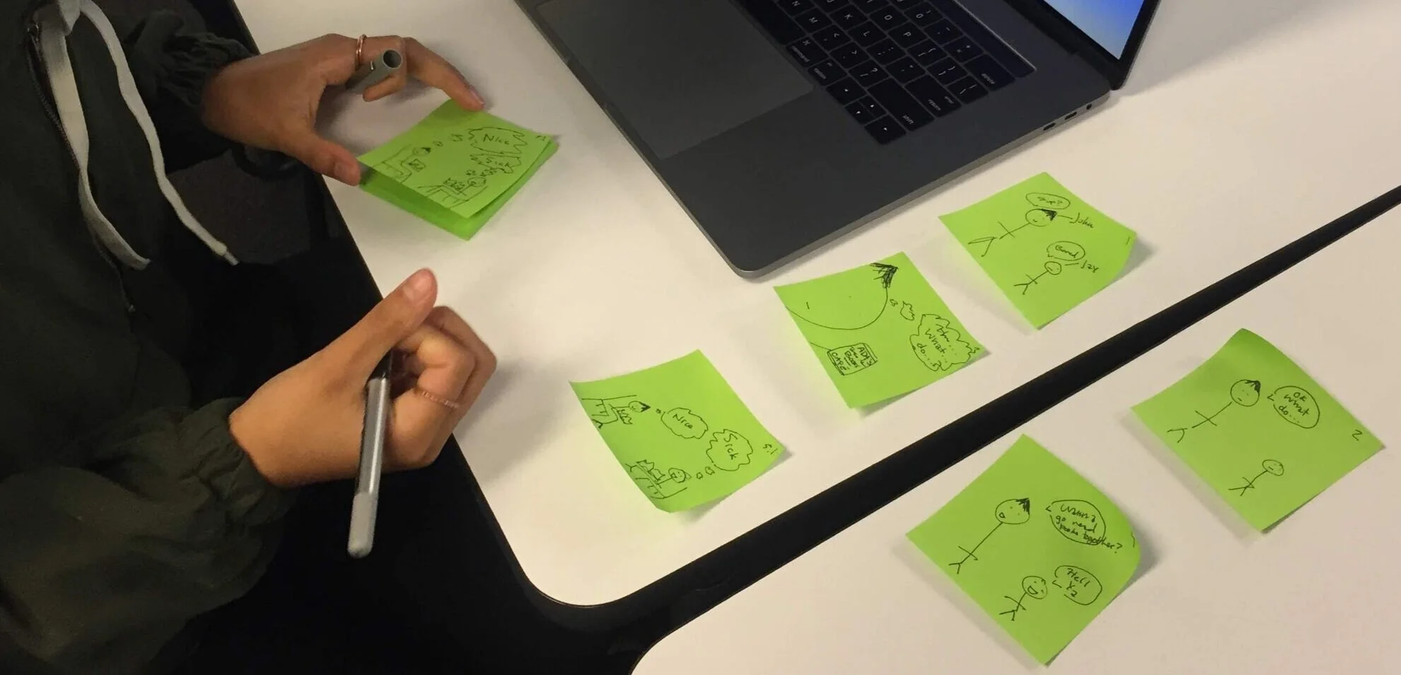 Sketching and storyboarding allow me to think through the ada’s experience with empathy for the user’s touch points and choices while trying to complete the task, without committing to any pixel-perfect wires or designs digitally.